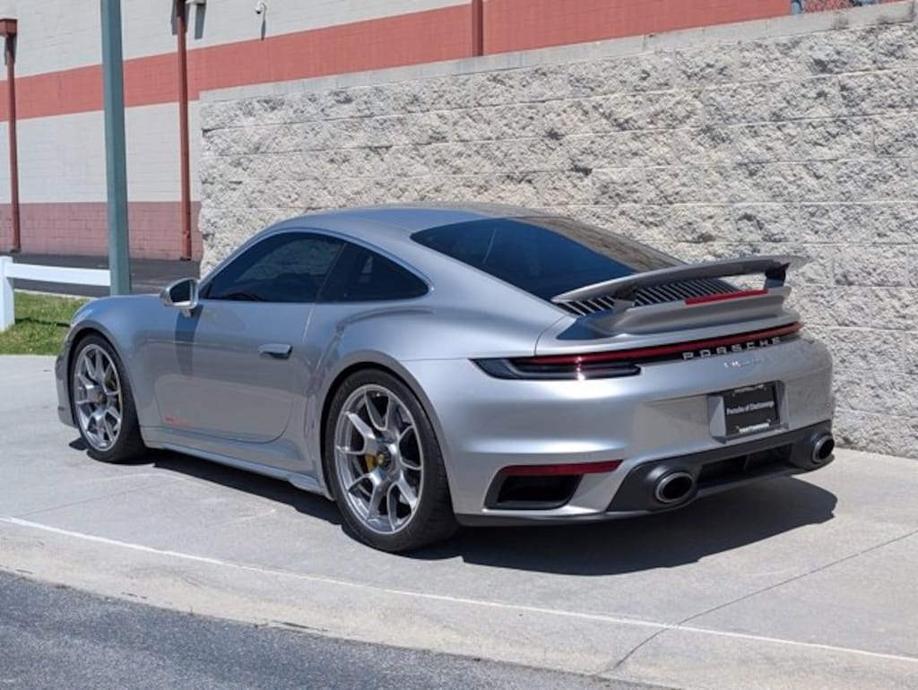 Porsche Certified Pre-Owned, This Porsche's original factory warranty started on 03/28/2025, Local Consignment Vehicle, 18-Way Adaptive Sport Seats Plus w/Memory Package, Aluminum Pedals & Footrest, Ambient Lighting, Backrest Shells in Leather w/Leather Inlay, Burmester High-End Surround Sound System, Center Console Lid w/Model Designation, Central Tachometer in White, Exclusive Design Fuel Cap, Exterior Mirror Base in Exterior Color, Fire Extinguisher, Front Axle Lift System, Front Ventilated Seats, Heated GT Sport Steering Wheel in Leather (2PJ), Ionizer, Lane Change Assist (LCA), Lane Keep Assist (LKA) w/Traffic Sign Recognition, Model Designation on Doors in Red, PASM Sport Suspension (Lowered 10mm), Porsche Crest on Front Headrests, Power Steering Plus, Preparation for Front & Rear Porsche Dashcam, Preparation for Roof Transport System, Smoking Package, Sport Chrono Stopwatch Dial in White, Sport Exhaust System w/Exclusive Design Tailpipes, Steering Column Casing in Lthr i.c.w. Memory Pkg, Storage Package, Surround View, Wheels: 20" Fr/21" Rr 911 Turbo S Exclusive Design. Certified. 8-Speed Porsche Doppelkupplung (PDK) 3.8L H6 Turbocharged DOHC 24V LEV3-ULEV70 640hp GT Silver Metallic