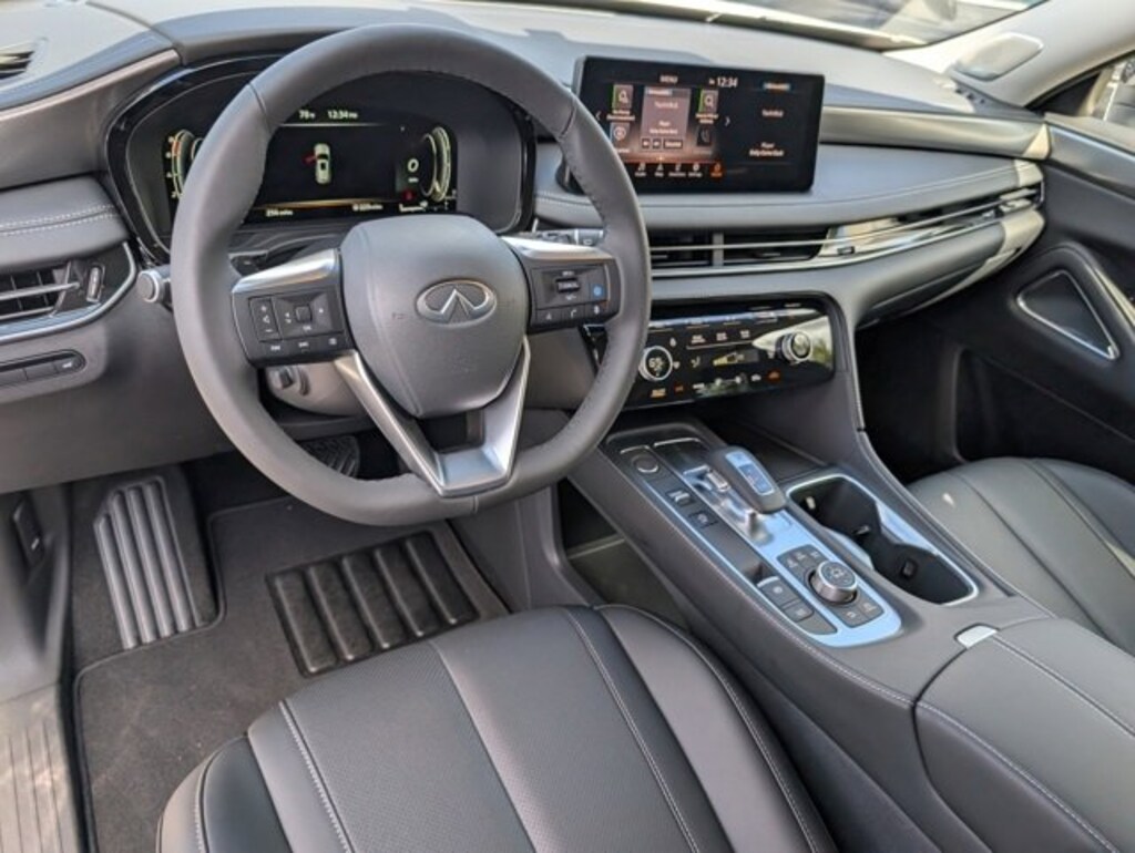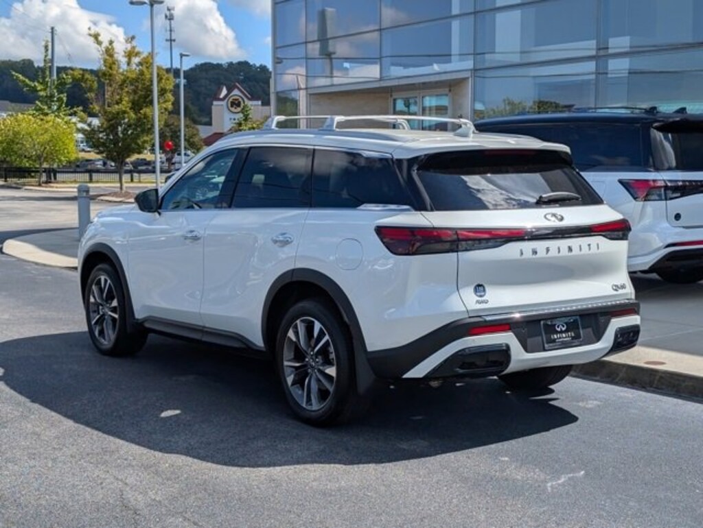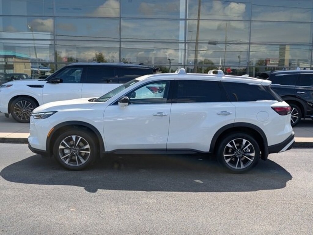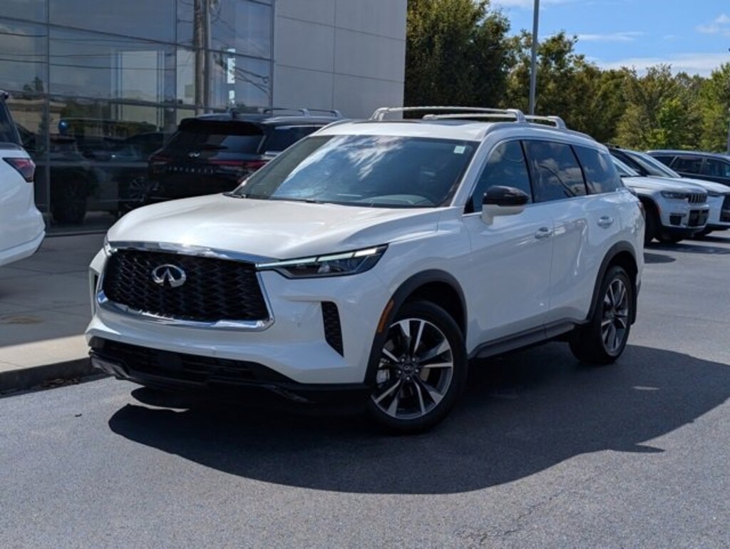 This great-looking 2025 INFINITI QX60 LUXE in Majestic White features Cargo Package, 3rd row seats: bench, 4-Wheel Disc Brakes, ABS brakes, Air Conditioning, Alloy wheels, AM/FM radio: SiriusXM, Auto High-beam Headlights, Auto tilt-away steering wheel, Auto-dimming Rear-View mirror, Automatic temperature control, Brake assist, Delay-off headlights, Driver door bin, Driver vanity mirror, Dual front impact airbags, Dual front side impact airbags, Electronic Stability Control, Exterior Parking Camera Rear, Four wheel independent suspension, Front anti-roll bar, Front Bucket Seats, Front dual zone A/C, Front reading lights, Fully automatic headlights, Garage door transmitter: HomeLink, Heated door mirrors, Heated front seats, Heated rear seats, Heated steering wheel, Illuminated entry, Knee airbag, Leather Shift Knob, Leather steering wheel, Leather-Appointed Seating Surfaces, Low tire pressure warning, Memory seat, Navigation system: INFINITI InTouch Navigation, Occupant sensing airbag, Outside temperature display, Overhead airbag, Overhead console, Panic alarm, Passenger door bin, Passenger vanity mirror, Power door mirrors, Power driver seat, Power Liftgate, Power moonroof, Power passenger seat, Power steering, Power windows, Radio data system, Rain sensing wipers, Rear air conditioning, Rear anti-roll bar, Rear reading lights, Rear side impact airbag, Rear window defroster, Rear window wiper, Reclining 3rd row seat, Remote keyless entry, Security system, Speed control, Speed-sensing steering, Speed-Sensitive Wipers, Split folding rear seat, Spoiler, Steering wheel memory, Steering wheel mounted audio controls, Tachometer, Telescoping steering wheel, Tilt steering wheel, Traction control, Trip computer, Turn signal indicator mirrors, and Variably intermittent wipers. Shop 100% Online and We Will Come To You!