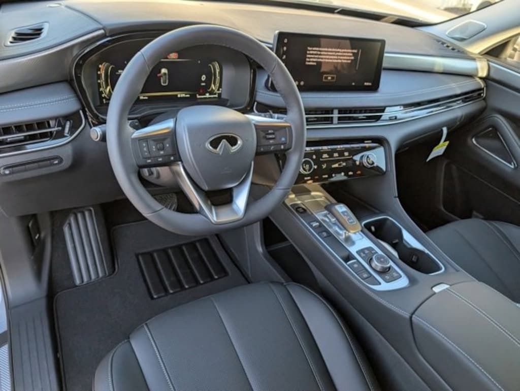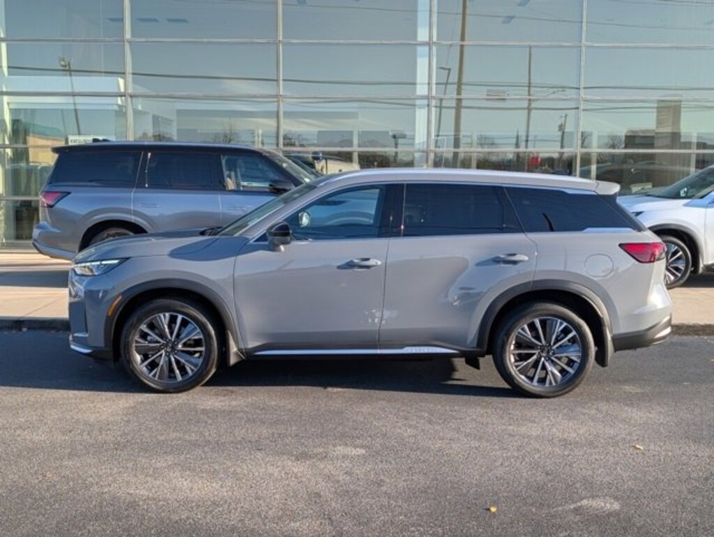 This beautiful 2026 INFINITI QX60 LUXE in Harbor Gray features Cargo Package (Clear Rear Bumper Film), 17 Speakers, 3rd row seats: bench, 4-Wheel Disc Brakes, ABS brakes, Air Conditioning, Alloy wheels, AM/FM radio: SiriusXM with 360L, Anti-whiplash front head restraints, Apple CarPlay/Android Auto, Auto High-beam Headlights, Auto tilt-away steering wheel, Auto-dimming door mirrors, Auto-dimming Rear-View mirror, Automatic temperature control, Bose Performance Series 17-Speaker Sound System, Brake assist, Bumpers: body-color, Climate Controlled Front Bucket Seats, Delay-off headlights, Driver door bin, Driver vanity mirror, Dual front impact airbags, Dual front side impact airbags, Electronic Stability Control, Emergency communication system: INFINITI InTouch, Four wheel independent suspension, Front anti-roll bar, Front Bucket Seats, Front Center Armrest, Front dual zone A/C, Front reading lights, Fully automatic headlights, Garage door transmitter: HomeLink, Heated door mirrors, Heated front seats, Heated rear seats, Heated steering wheel, Illuminated entry, Knee airbag, Leather Shift Knob, Leather steering wheel, Literature Kit, Low tire pressure warning, Memory seat, Navigation system: Google Built-in, Occupant sensing airbag, Outside temperature display, Overhead airbag, Overhead console, Panic alarm, Passenger door bin, Passenger vanity mirror, Power door mirrors, Power driver seat, Power Liftgate, Power moonroof: Panoramic, Power passenger seat, Power steering, Power windows, Premium Paint, Radio data system, Radio: Klipsch Premium Audio System, Rain sensing wipers, Rear air conditioning, Rear anti-roll bar, Rear reading lights, Rear seat center armrest, Rear side impact airbag, Rear window defroster, Rear window wiper, Reclining 3rd row seat, Remote keyless entry, Security system, Speed control, Speed-sensing steering, Speed-Sensitive Wipers, Splash Guards, Split folding rear seat, Spoiler, Steering wheel memory, Steering wheel mounted audio controls, Tachometer, Telescoping steering wheel, Tilt steering wheel, Traction control, Trip computer, Turn signal indicator mirrors, Variably intermittent wipers, Ventilated front seats, and Wheels: 20" x 8J Machined Aluminum Alloy. Shop 100% Online and We Will Come To You!