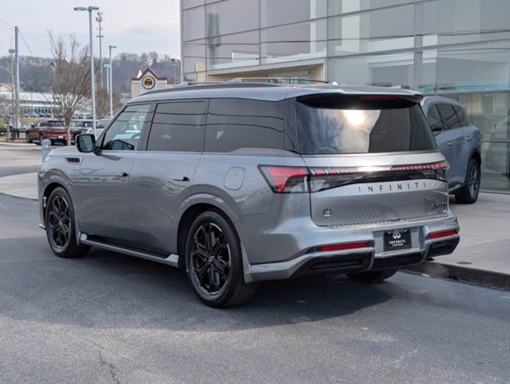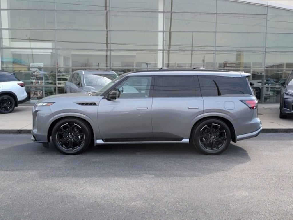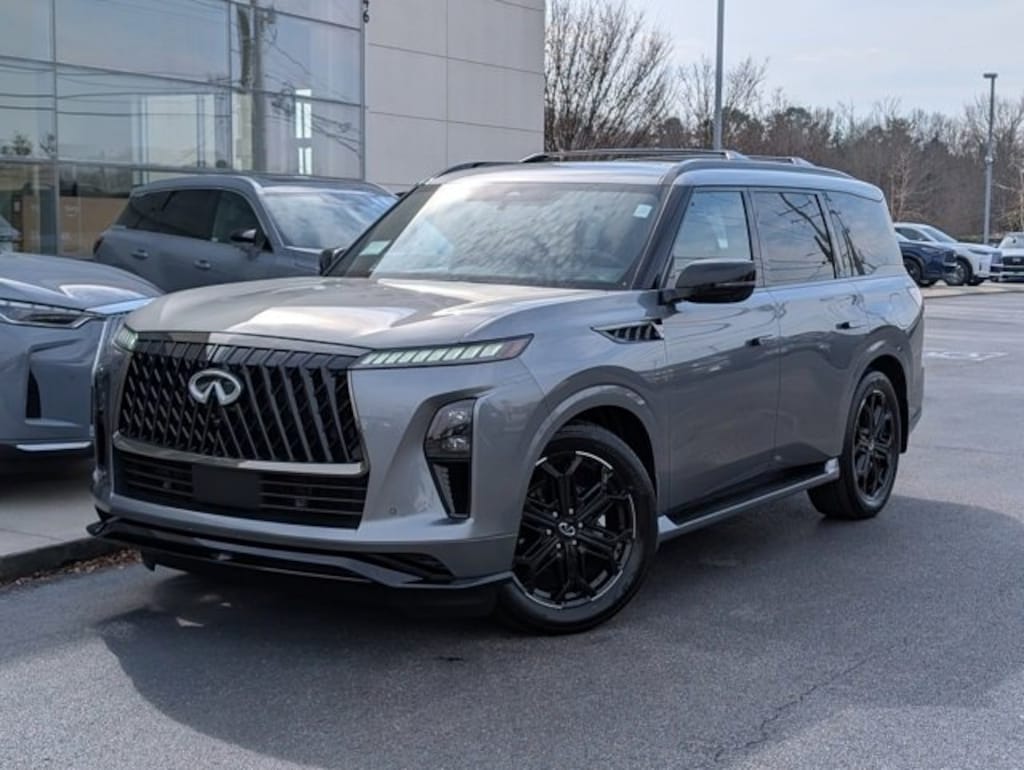 This wonderful-looking 2026 INFINITI QX80 SPORT in Dynamic Metal features Black Interior Lighting Package (INFINITI Radiant Black Cargo Scuff Plates and Panoramic Illuminated Headliner), Sport Exterior Package (Black Roof Rail Crossbars and Dark Chrome Rear Bumper Protector), 3rd row seats: bench, 4-Wheel Disc Brakes, ABS brakes, Adaptive suspension, Air Conditioning, Alloy wheels, AM/FM radio: SiriusXM with 360L, Anti-whiplash front head restraints, Apple CarPlay/Android Auto, Audio memory, Auto High-beam Headlights, Auto tilt-away steering wheel, Auto-dimming door mirrors, Auto-dimming Rear-View mirror, Auto-leveling suspension, Automatic temperature control, Brake assist, Compass, Delay-off headlights, Driver door bin, Driver vanity mirror, Dual front impact airbags, Dual front side impact airbags, Electronic Stability Control, Emergency communication system: INFINITI InTouch, Four wheel independent suspension, Front anti-roll bar, Front Bucket Seats, Front Center Armrest, Front dual zone A/C, Front reading lights, Fully automatic headlights, Garage door transmitter: HomeLink, Genuine wood dashboard insert, Genuine wood door panel insert, Heads-Up Display, Heated and Climate Controlled Front Bucket Seats with Massage, Heated door mirrors, Heated front seats, Heated rear seats, Heated steering wheel, HVAC memory, Illuminated entry, Knee airbag, Leather steering wheel, Low tire pressure warning, Memory seat, Navigation system: Google Built-in, Occupant sensing airbag, Outside temperature display, Overhead airbag, Overhead console, Panic alarm, Passenger door bin, Passenger vanity mirror, Power door mirrors, Power driver seat, Power Liftgate, Power moonroof, Power passenger seat, Power steering, Power windows, Radio data system, Radio: Klipsch Premiere Audio System, Rain sensing wipers, Rear air conditioning, Rear anti-roll bar, Rear reading lights, Rear seat center armrest, Rear window defroster, Rear window wiper, Reclining 3rd row seat, Remote keyless entry, Security system, Speed control, Speed-sensing steering, Splash Guards, Split folding rear seat, Spoiler, Steering wheel memory, Steering wheel mounted audio controls, Tachometer, Telescoping steering wheel, Tilt steering wheel, Traction control, Trip computer, Turn signal indicator mirrors, Unique SPORT Semi-Aniline Leather Seating Surfaces, Variably intermittent wipers, Ventilated front seats, Ventilated rear seats, and Wheels: 22" x 8.5J Unique SPORT Alloy. Shop 100% Online and We Will Come To You!