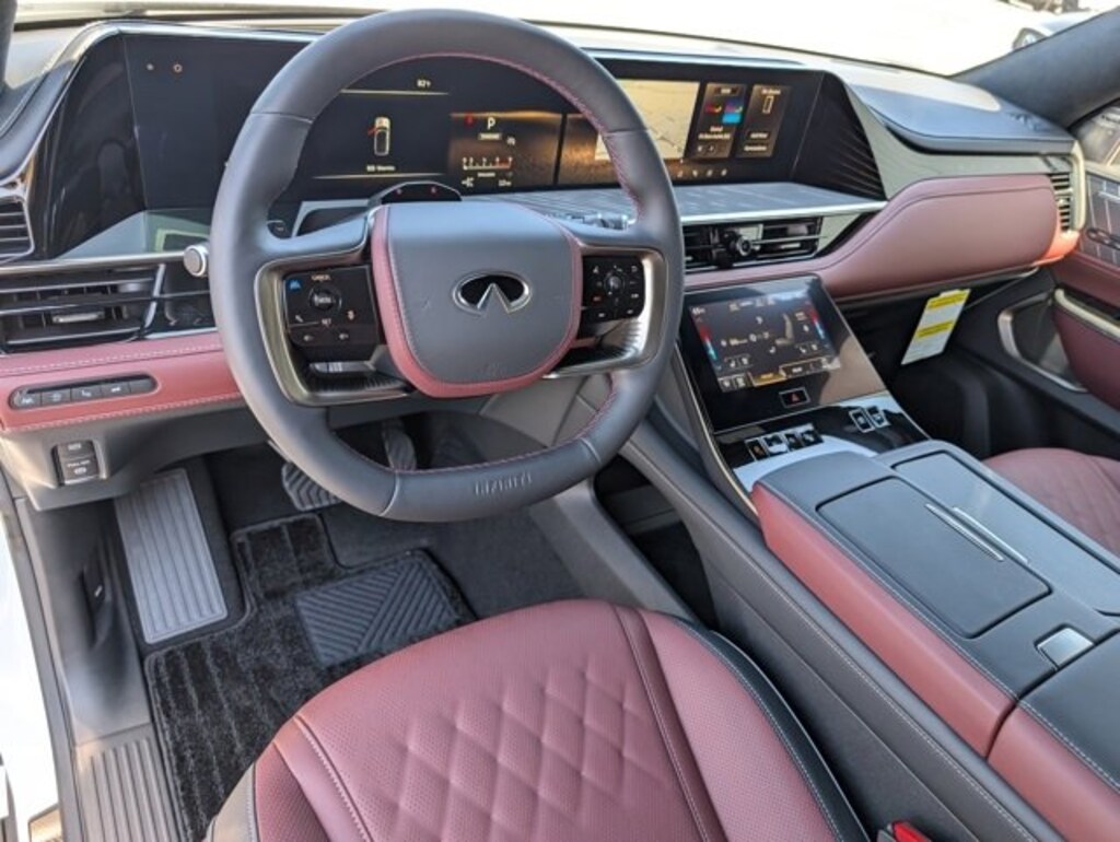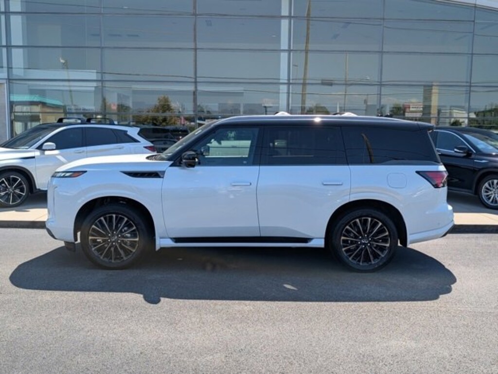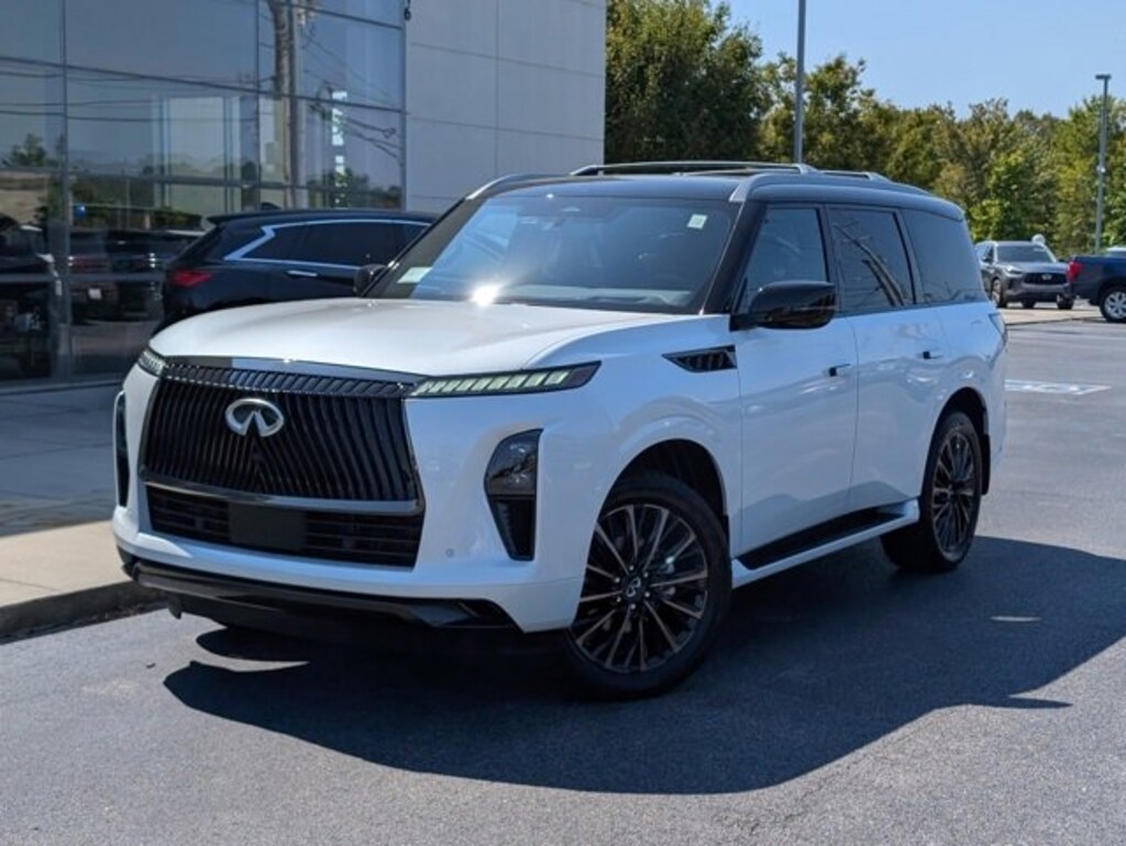 This superb-looking 2026 INFINITI QX80 AUTOGRAPH in Radiant White/Black Obsidian features AUTOGRAPH Exterior Package (Dark Rear Bumper Protector and Silver Roof Rail Crossbars), Premium Cargo Package (Cargo Blocks/Stabilizers, Cargo Shelf/Barrier, Carpeted Cargo Area Protector, Console Net, and Soft-Sided Cargo Cooler), 3rd row seats: bench, 4-Wheel Disc Brakes, ABS brakes, Adaptive suspension, Air Conditioning, Alloy wheels, AM/FM radio: SiriusXM with 360L, Anti-whiplash front head restraints, Apple CarPlay/Android Auto, Audio memory, Auto High-beam Headlights, Auto tilt-away steering wheel, Auto-dimming door mirrors, Auto-dimming Rear-View mirror, Auto-leveling suspension, Automatic temperature control, Brake assist, Bumpers: body-color, Compass, Delay-off headlights, Driver door bin, Driver vanity mirror, Dual front impact airbags, Dual front side impact airbags, Electronic Stability Control, Emergency communication system: INFINITI InTouch, Four wheel independent suspension, Front anti-roll bar, Front Bucket Seats, Front Center Armrest, Front dual zone A/C, Front reading lights, Fully automatic headlights, Garage door transmitter: myQ Connected Garage, Genuine wood dashboard insert, Genuine wood door panel insert, Heads-Up Display, Heated door mirrors, Heated front seats, Heated rear seats, Heated steering wheel, Htd & Climate Controlled Fr Bucket Seats w/Massage, HVAC memory, Illuminated entry, Knee airbag, Leather steering wheel, Low tire pressure warning, Memory seat, Navigation system: Google Built-in, Occupant sensing airbag, Outside temperature display, Overhead airbag, Overhead console, Panic alarm, Passenger door bin, Passenger vanity mirror, Power door mirrors, Power driver seat, Power Liftgate, Power moonroof, Power passenger seat, Power steering, Power windows, Radio data system, Radio: Klipsch Reference Premiere Audio System, Rain sensing wipers, Rear air conditioning, Rear anti-roll bar, Rear reading lights, Rear seat center armrest, Rear window defroster, Rear window wiper, Reclining 3rd row seat, Remote keyless entry, Security system, Semi-Aniline Premium Leather Seating Surfaces, Speed control, Speed-sensing steering, Splash Guards, Split folding rear seat, Spoiler, Steering wheel memory, Steering wheel mounted audio controls, Tachometer, Telescoping steering wheel, Tilt steering wheel, Traction control, Trip computer, Turn signal indicator mirrors, Two-Tone Super Premium Paint, Variably intermittent wipers, Ventilated front seats, Ventilated rear seats, and Wheels: 22" x 8.5J Cast Aluminum-Alloy. Shop 100% Online and We Will Come To You!