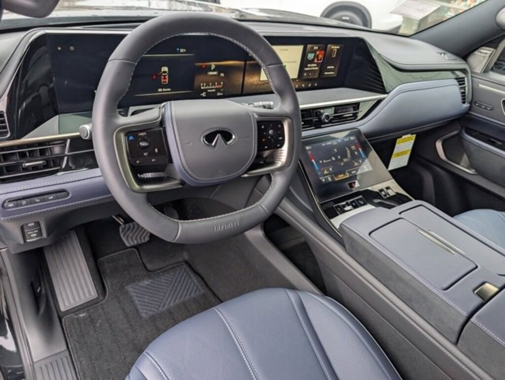 This outstanding-looking 2026 INFINITI QX80 SPORT in Mineral Black features Sport Exterior Package (Black Roof Rail Crossbars and Dark Chrome Rear Bumper Protector), 3rd row seats: bench, 4-Wheel Disc Brakes, ABS brakes, Adaptive suspension, Air Conditioning, Alloy wheels, AM/FM radio: SiriusXM with 360L, Anti-whiplash front head restraints, Apple CarPlay/Android Auto, Audio memory, Auto High-beam Headlights, Auto tilt-away steering wheel, Auto-dimming door mirrors, Auto-dimming Rear-View mirror, Auto-leveling suspension, Automatic temperature control, Brake assist, Compass, Delay-off headlights, Driver door bin, Driver vanity mirror, Dual front impact airbags, Dual front side impact airbags, Electronic Stability Control, Emergency communication system: INFINITI InTouch, Four wheel independent suspension, Front anti-roll bar, Front Bucket Seats, Front Center Armrest, Front dual zone A/C, Front reading lights, Fully automatic headlights, Garage door transmitter: HomeLink, Genuine wood dashboard insert, Genuine wood door panel insert, Heads-Up Display, Heated and Climate Controlled Front Bucket Seats with Massage, Heated door mirrors, Heated front seats, Heated rear seats, Heated steering wheel, HVAC memory, Illuminated entry, Knee airbag, Leather steering wheel, Low tire pressure warning, Memory seat, Navigation system: Google Built-in, Occupant sensing airbag, Outside temperature display, Overhead airbag, Overhead console, Panic alarm, Passenger door bin, Passenger vanity mirror, Power door mirrors, Power driver seat, Power Liftgate, Power moonroof, Power passenger seat, Power steering, Power windows, Radio data system, Radio: Klipsch Premiere Audio System, Rain sensing wipers, Rear air conditioning, Rear anti-roll bar, Rear reading lights, Rear seat center armrest, Rear window defroster, Rear window wiper, Reclining 3rd row seat, Remote keyless entry, Security system, Speed control, Speed-sensing steering, Splash Guards, Split folding rear seat, Spoiler, Steering wheel memory, Steering wheel mounted audio controls, Tachometer, Telescoping steering wheel, Tilt steering wheel, Traction control, Trip computer, Turn signal indicator mirrors, Unique SPORT Semi-Aniline Leather Seating Surfaces, Variably intermittent wipers, Ventilated front seats, Ventilated rear seats, and Wheels: 22" x 8.5J Unique SPORT Alloy. Shop 100% Online and We Will Come To You!