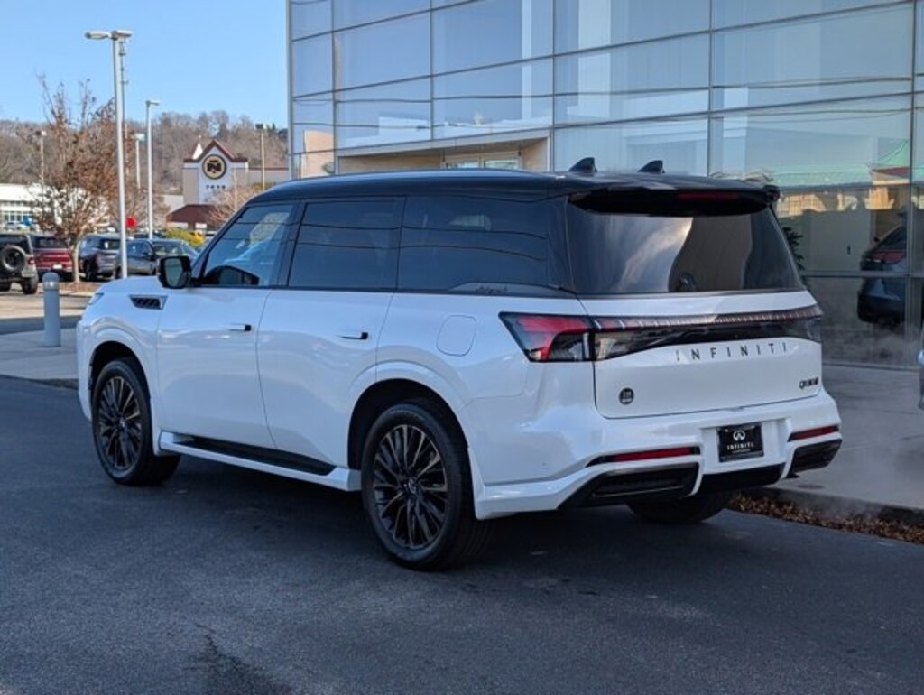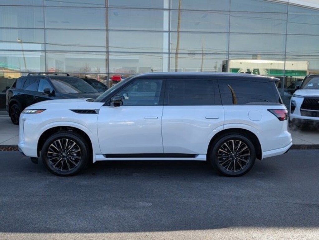 This superb-looking 2026 INFINITI QX80 AUTOGRAPH in Radiant White/Black Obsidian features Premium Cargo Package (Cargo Blocks/Stabilizers, Cargo Shelf/Barrier, Carpeted Cargo Area Protector, Console Net, and Soft-Sided Cargo Cooler), 3rd row seats: bench, 4-Wheel Disc Brakes, ABS brakes, Adaptive suspension, Air Conditioning, Alloy wheels, AM/FM radio: SiriusXM with 360L, Anti-whiplash front head restraints, Apple CarPlay/Android Auto, Audio memory, Auto High-beam Headlights, Auto tilt-away steering wheel, Auto-dimming door mirrors, Auto-dimming Rear-View mirror, Auto-leveling suspension, Automatic temperature control, Brake assist, Bumpers: body-color, Compass, Delay-off headlights, Driver door bin, Driver vanity mirror, Dual front impact airbags, Dual front side impact airbags, Electronic Stability Control, Emergency communication system: INFINITI InTouch, Four wheel independent suspension, Front anti-roll bar, Front Bucket Seats, Front Center Armrest, Front dual zone A/C, Front reading lights, Fully automatic headlights, Garage door transmitter: myQ Connected Garage, Genuine wood dashboard insert, Genuine wood door panel insert, Heads-Up Display, Heated and Climate Controlled Front Bucket Seats with Massage, Heated door mirrors, Heated front seats, Heated rear seats, Heated steering wheel, HVAC memory, Illuminated entry, Knee airbag, Leather steering wheel, Low tire pressure warning, Memory seat, Navigation system: Google Built-in, Occupant sensing airbag, Outside temperature display, Overhead airbag, Overhead console, Panic alarm, Passenger door bin, Passenger vanity mirror, Power door mirrors, Power driver seat, Power Liftgate, Power moonroof, Power passenger seat, Power steering, Power windows, Radio data system, Radio: Klipsch Premiere Audio System, Rain sensing wipers, Rear air conditioning, Rear anti-roll bar, Rear reading lights, Rear seat center armrest, Rear window defroster, Rear window wiper, Reclining 3rd row seat, Remote keyless entry, Security system, Semi-Aniline Premium Leather Seating Surfaces, Speed control, Speed-sensing steering, Splash Guards, Split folding rear seat, Spoiler, Steering wheel memory, Steering wheel mounted audio controls, Tachometer, Telescoping steering wheel, Tilt steering wheel, Traction control, Trip computer, Turn signal indicator mirrors, Two-Tone Super Premium Paint, Variably intermittent wipers, Ventilated front seats, Ventilated rear seats, and Wheels: 22" x 8.5J Cast Aluminum-Alloy. Shop 100% Online and We Will Come To You!