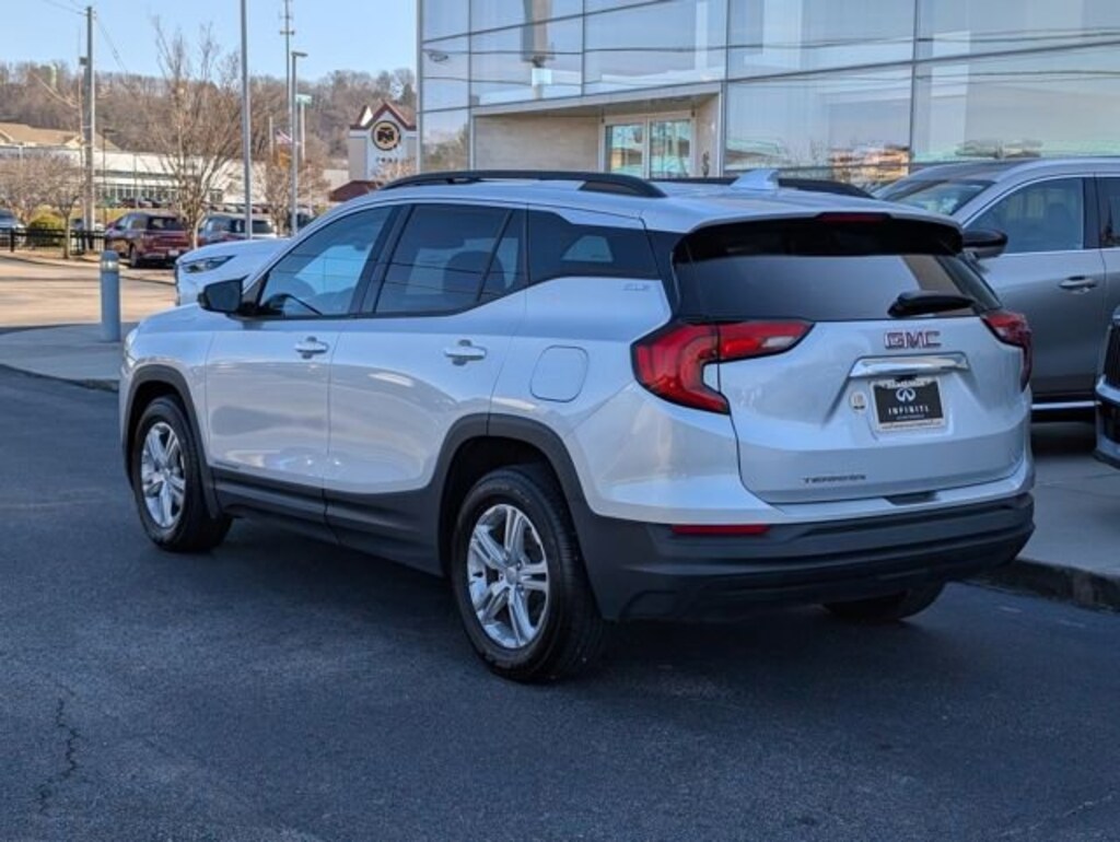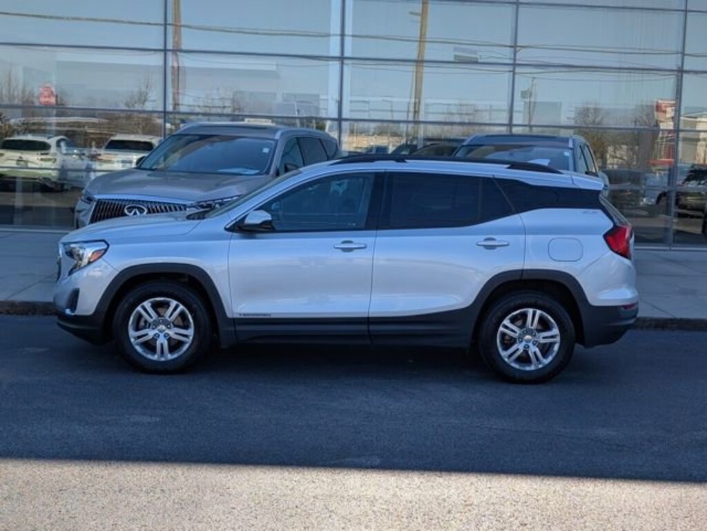 2019 GMC Terrain SLE FWD This fantastic 2019 GMC Terrain SLE in Quicksilver Metallic features Driver Convenience Package (8-Way Power Driver Seat Adjuster, Driver & Front Passenger Heated Seats, Dual-Zone Automatic Climate Control, Power Driver Lumbar Control, Remote Start, and Roof-Mounted Luggage Rack Black Side Rails), Infotainment Package I (110-Volt Power Outlet, 2 USB Data Ports, 2 USB Data Ports w/SD Card Reader, 4.2" Multi-Color Enhanced Driver Information Screen, HD Rear Vision Camera, Radio: GMC Infotainment Audio System w/Navigation, and SiriusXM Radio), Preferred Equipment Group 3SA, 2 USB Data Ports w/Auxiliary Input Jack, 3.47 Axle Ratio, 4-Way Manual Driver's Seat, 4-Way Manual Front Passenger Seat, 4-Wheel Disc Brakes, 6 Speakers, 6-Speaker Audio System Feature, ABS brakes, Air Conditioning, Alloy wheels, AM/FM radio, Apple CarPlay/Android Auto, Auto-dimming Rear-View mirror, Bluetooth® For Phone, Brake assist, Bumpers: body-color, Compass, Delay-off headlights, Driver door bin, Driver vanity mirror, Dual front impact airbags, Dual front side impact airbags, Electronic Stability Control, Emergency communication system, Exterior Parking Camera Rear, Four wheel independent suspension, Front anti-roll bar, Front Bucket Seats, Front Center Armrest, Front reading lights, Fully automatic headlights, Heated door mirrors, High-Intensity Discharge Headlights, Illuminated entry, Low tire pressure warning, Occupant sensing airbag, Outside temperature display, Overhead airbag, Overhead console, Panic alarm, Passenger door bin, Passenger vanity mirror, Power door mirrors, Power steering, Power windows, Premium Cloth Seat Trim, Radio data system, Radio: GMC Infotainment Audio System w/7" Display, Rear anti-roll bar, Rear seat center armrest, Rear window defroster, Rear window wiper, Remote keyless entry, Security system, Speed control, Speed-sensing steering, Split folding rear seat, Spoiler, Steering wheel mounted audio controls, Tachometer, Telescoping steering wheel, Tilt steering wheel, Traction control, Trip computer, Variably intermittent wipers, and Wheels: 17" x 7" Silver Painted Aluminum. Shop 100% Online and We Will Come To You! 9-Speed Automatic 1.5L DOHC