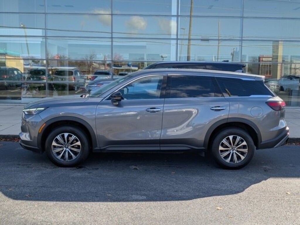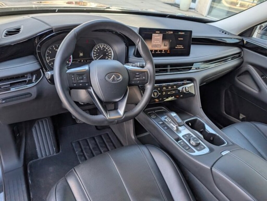 Clean CARFAX. Certified. 2023 INFINITI QX60 PURE AWD This beautiful 2023 INFINITI QX60 PURE in Graphite Shadow features INFINITI Certified Pre-Owned Certified, 3rd row seats: bench, 4-Wheel Disc Brakes, 4.334 Axle Ratio, 9 Speakers, ABS brakes, Air Conditioning, Alloy wheels, AM/FM radio: SiriusXM, Anti-whiplash front head restraints, Auto High-beam Headlights, Auto-dimming Rear-View mirror, Automatic temperature control, Blind Spot Warning, Brake assist, Bumpers: body-color, Delay-off headlights, Driver door bin, Driver vanity mirror, Dual front impact airbags, Dual front side impact airbags, Electronic Stability Control, Emergency communication system, Four wheel independent suspension, Front anti-roll bar, Front Bucket Seats, Front Center Armrest, Front dual zone A/C, Front reading lights, Fully automatic headlights, Heated door mirrors, Heated Front Bucket Seats, Heated front seats, Heated steering wheel, Illuminated entry, Knee airbag, Leather Shift Knob, Leather steering wheel, Leather-Appointed Seating Surfaces, Low tire pressure warning, Memory seat, Occupant sensing airbag, Outside temperature display, Overhead airbag, Overhead console, Panic alarm, Passenger door bin, Passenger vanity mirror, Power door mirrors, Power driver seat, Power Liftgate, Power moonroof, Power passenger seat, Power steering, Power windows, Radio data system, Radio: AM/FM Audio System, Rain sensing wipers, Rear air conditioning, Rear anti-roll bar, Rear Parking Sensors, Rear reading lights, Rear seat center armrest, Rear side impact airbag, Rear window defroster, Rear window wiper, Reclining 3rd row seat, Remote keyless entry, Security system, Speed control, Speed-sensing steering, Speed-Sensitive Wipers, Split folding rear seat, Spoiler, Steering wheel mounted audio controls, Tachometer, Telescoping steering wheel, Tilt steering wheel, Traction control, Trip computer, Turn signal indicator mirrors, Variably intermittent wipers, and Wheels: 18" x 8J Machined Aluminum Alloy. Shop 100% Online and We Will Come To You! 9-Speed Automatic 3.5L V6