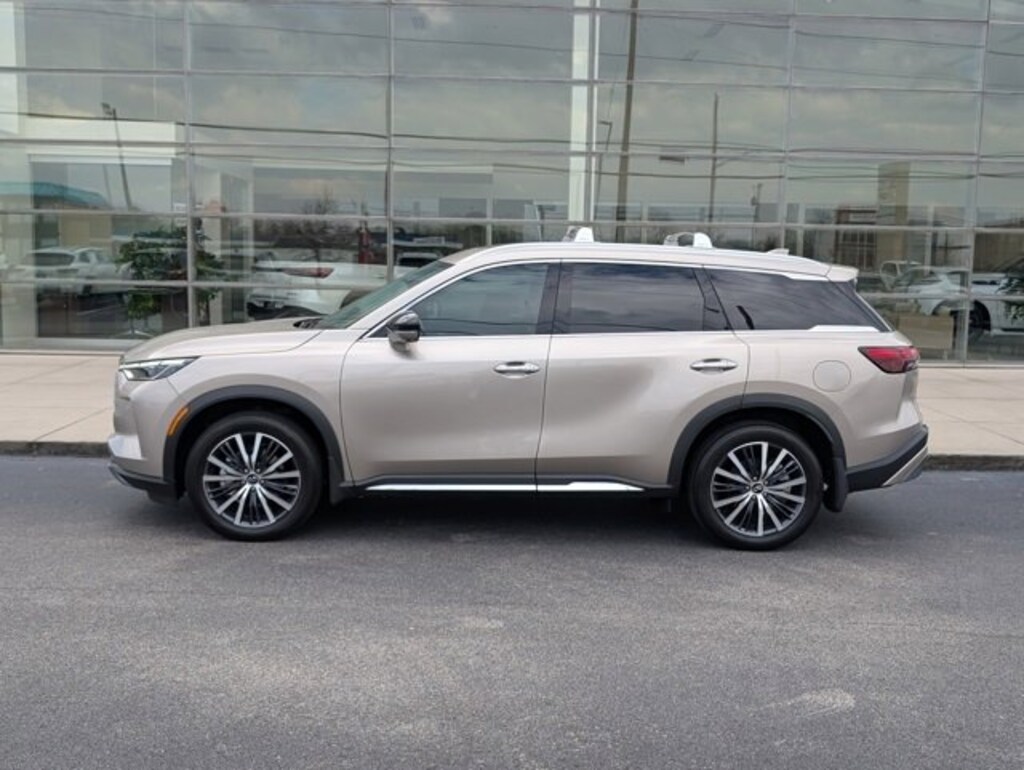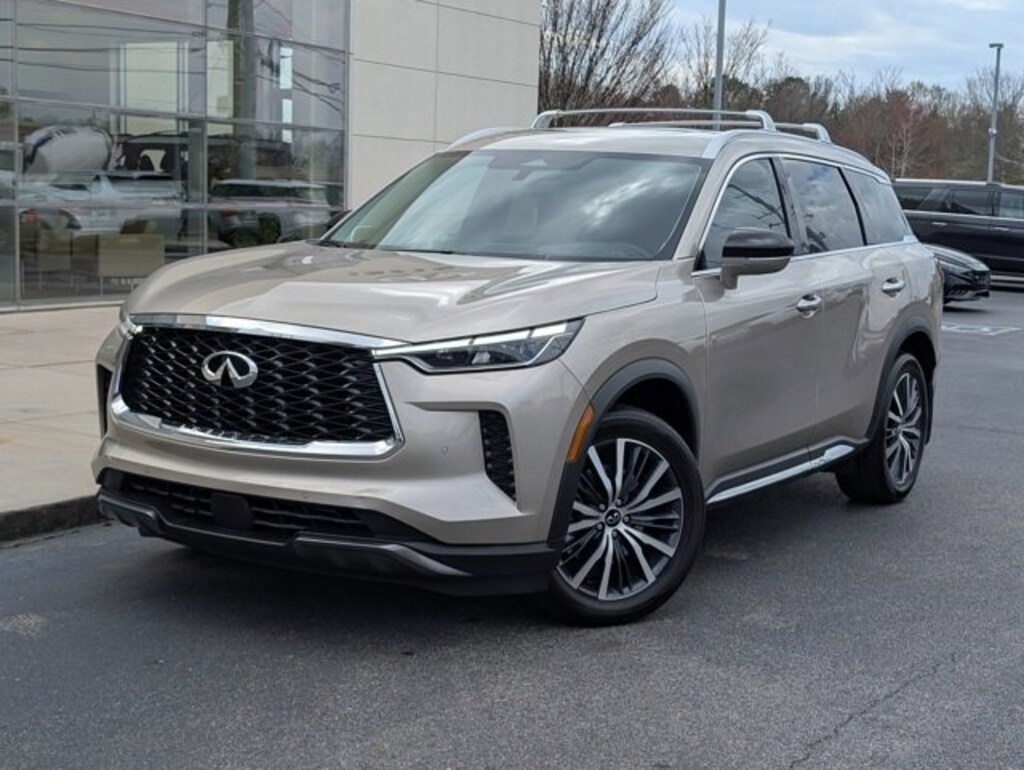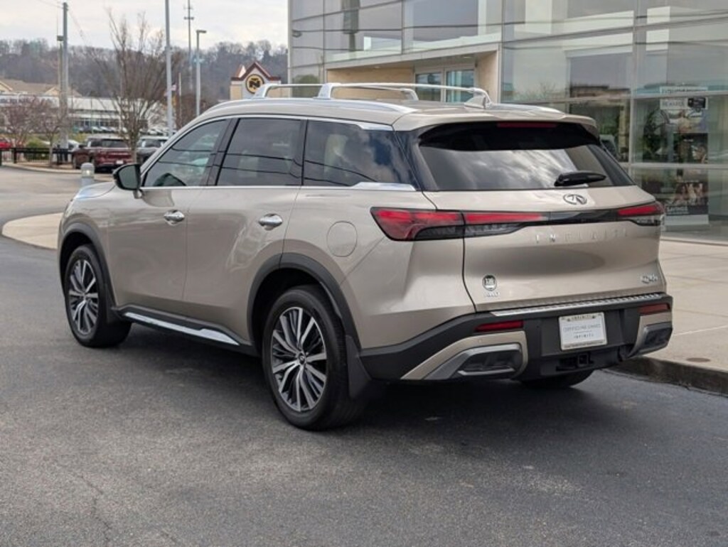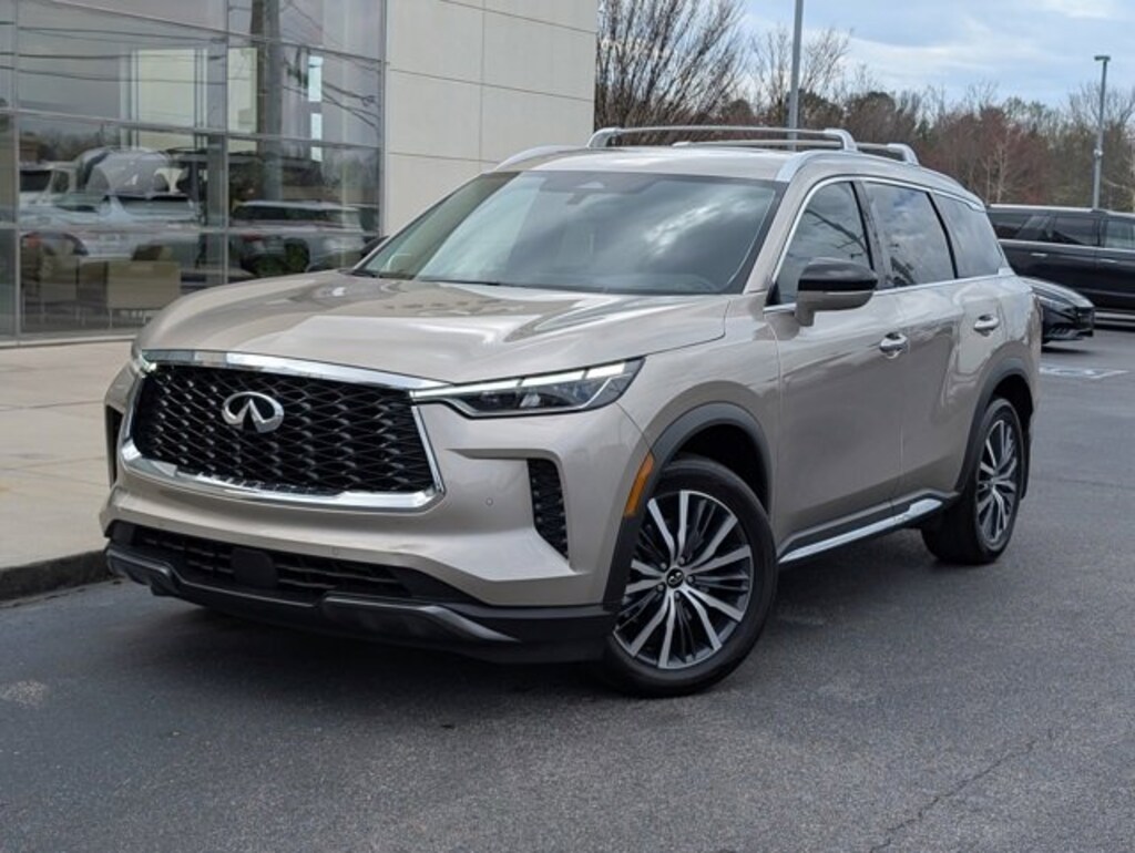 CARFAX One-Owner. Clean CARFAX. 2023 INFINITI QX60 Sensory AWD 10.8" Head-Up Display, 6,000 lb. Tow Capacity, Adaptive Front Lighting System, Cargo Mat (Reversible), Cargo Package, First Aid Kit, Hitch Member & Receiver, Premium Paint - Warm Titanium, Silver Cross Bar, Smart Rear View Mirror, Splash Guards, Tow ECU, Tow Package, Tow Pre-Wiring, Trailer Stability Program (Sway Control), Transmission Oil Cooler, Vision Package. 9-Speed Automatic 3.5L V6