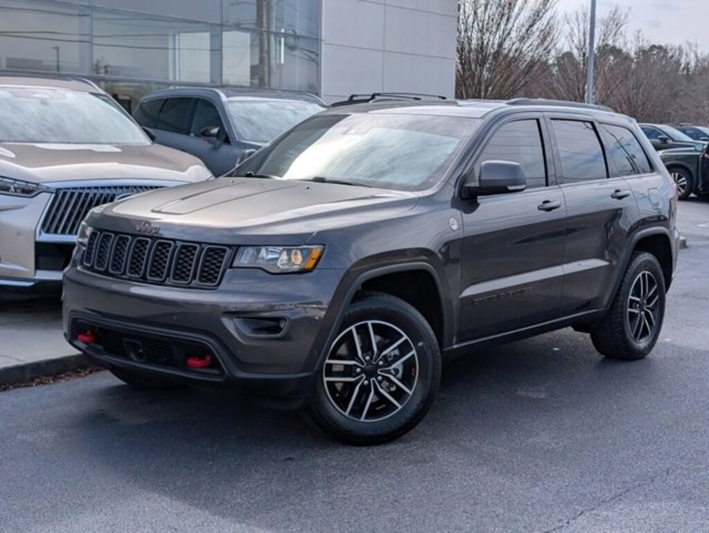 2021 Jeep Grand Cherokee Trailhawk 4WD This gorgeous 2021 Jeep Grand Cherokee Trailhawk in Granite Crystal Metallic Clearcoat features Protech II (Adaptive Cruise Control w/Stop, Advanced Brake Assist, Full Speed FWD Collision Warn Plus, Lane Departure Warning Plus, Parallel & Perp Park Assist w/Stop, and Rain Sensitive Windshield Wipers), Quick Order Package 22J, 4WD, 1-Year SiriusXM Guardian Trial, 10 Speakers, 230MM Rear Axle, 3.09 Rear Axle Ratio, 3.45 Rear Axle Ratio, 4-Wheel Disc Brakes, 4G LTE Wi-Fi Hot Spot, 8.4" Touchscreen Display, ABS brakes, Air Conditioning, Alloy wheels, AM/FM radio: SiriusXM, Anti-whiplash front head restraints, Apple CarPlay, Apple CarPlay/Android Auto, Audio memory, Auto-dimming door mirrors, Auto-dimming Rear-View mirror, Auto-leveling suspension, Automatic temperature control, Brake assist, Bumpers: body-color, Compass, Delay-off headlights, Driver door bin, Driver vanity mirror, Dual front impact airbags, Dual front side impact airbags, Electronic Stability Control, Emergency communication system: SiriusXM Guardian, Four wheel independent suspension, Front anti-roll bar, Front Bucket Seats, Front Center Armrest w/Storage, Front dual zone A/C, Front fog lights, Front reading lights, Fully automatic headlights, Garage door transmitter, Google Android Auto, GPS Antenna Input, GPS Navigation, HD Radio, Heated door mirrors, Heated front seats, Heated rear seats, Heated steering wheel, Illuminated entry, Integrated Voice Command w/Bluetooth, Knee airbag, Leather Shift Knob, Low tire pressure warning, Memory seat, Navigation System, Normal Duty Suspension - Increased Travel, Occupant sensing airbag, Outside temperature display, Overhead airbag, Overhead console, Panic alarm, ParkView Rear Back-Up Camera, Passenger door bin, Passenger vanity mirror, Power door mirrors, Power driver seat, Power Liftgate, Power moonroof, Power passenger seat, Power steering, Power windows, Radio data system, Radio: Uconnect 4C Nav w/8.4" Display, Rear anti-roll bar, Rear reading lights, Rear seat center armrest, Rear window defroster, Rear window wiper, Remote keyless entry, Roof rack: rails only, Security system, SiriusXM Satellite Radio, SiriusXM Traffic Plus, SiriusXM Travel Link, Speed control, Speed-sensing steering, Speed-Sensitive Wipers, Split folding rear seat, Spoiler, Steering wheel mounted audio controls, Tachometer, Telescoping steering wheel, Tilt steering wheel, Traction control, Trailhawk Leather/Suede Seats, Trip computer, Turn signal indicator mirrors, Variably intermittent wipers, Ventilated front seats, Voltmeter, and Wheels: 18" x 8.0" Off Road Aluminum. Shop 100% Online and We Will Come To You! 4WD, Adaptive Cruise Control w/Stop, Advanced Brake Assist, Full Speed FWD Collision Warn Plus, Lane Departure Warning Plus, Parallel & Perp Park Assist w/Stop, Protech II, Rain Sensitive Windshield Wipers. 8-Speed Automatic 5.7L V8 HEMI