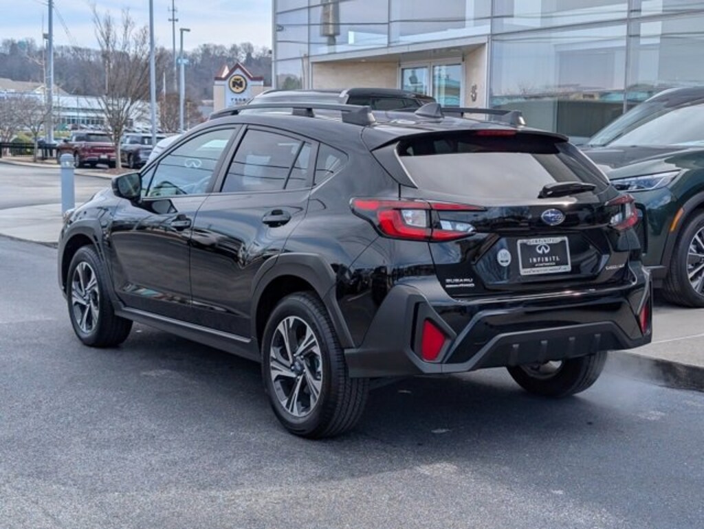 CARFAX One-Owner. Clean CARFAX. 2024 Subaru Crosstrek Premium AWD This beautiful-looking 2024 Subaru Crosstrek Premium in Crystal Black Silica features Crosstrek Mirror Package (Auto-Dimming Exterior Mirror w/Approach Light and Auto-Dimming Mirror w/Compass & HomeLink), Popular Package #3 (All-Weather Floor Liners, LED Upgrade, Rear Bumper Cover, and Rear Seatback Protector), Footwell Illumination Kit, 3.90 Axle Ratio, 4-Wheel Disc Brakes, 6 Speakers, ABS brakes, Air Conditioning, Alloy wheels, AM/FM radio: SiriusXM, Anti-whiplash front head restraints, Auto High-beam Headlights, Automatic temperature control, Brake assist, Bumpers: body-color, Driver door bin, Driver vanity mirror, Dual front impact airbags, Dual front side impact airbags, Electronic Stability Control, Emergency communication system: STARLINK Safety and Security (Subscription Required), Exterior Parking Camera Rear, Four wheel independent suspension, Front anti-roll bar, Front Bucket Seats, Front Center Armrest, Front dual zone A/C, Front fog lights, Front reading lights, Fully automatic headlights, Illuminated entry, Knee airbag, Low tire pressure warning, Occupant sensing airbag, Outside temperature display, Overhead airbag, Overhead console, Panic alarm, Passenger door bin, Passenger vanity mirror, Power door mirrors, Power steering, Power windows, Premium Cloth Upholstery, Radio data system, Radio: Subaru STARLINK 11.6" Multimedia Plus Sys, Rear anti-roll bar, Rear seat center armrest, Rear window defroster, Rear window wiper, Remote keyless entry, Security system, Speed control, Speed-sensing steering, Split folding rear seat, Spoiler, STARLINK/Apple CarPlay/Android Auto, Steering wheel mounted audio controls, Tachometer, Telescoping steering wheel, Tilt steering wheel, Traction control, Trip computer, Turn signal indicator mirrors, Variably intermittent wipers, and Wheels: 17" x 7.0J Dark Gray Aluminum Alloy. Shop 100% Online and We Will Come To You! All-Weather Floor Liners, Auto-Dimming Exterior Mirror w/Approach Light, Auto-Dimming Mirror w/Compass & HomeLink, Crosstrek Mirror Package, Footwell Illumination Kit, LED Upgrade, Popular Package #3, Rear Bumper Cover, Rear Seatback Protector. Lineartronic CVT 2.0L 4-Cylinder DOHC 16V